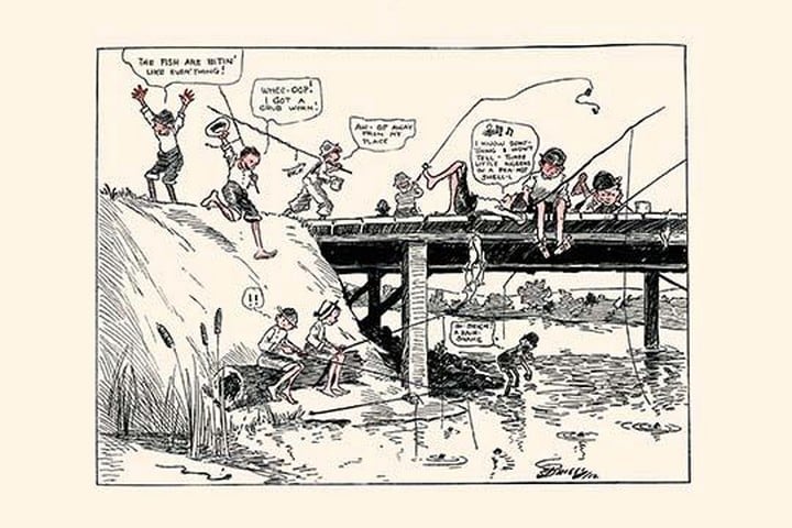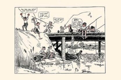 Clare A. Briggs (1875-1930) was an early American comic strip artist who gained prominence in 1904 with his strip A. Piker Clerk. His later comic strips, such as When a Feller Needs a Friend, Ain’t It a Grand and Glorious Feeling?, The Days of Real Sport, and Mr. and Mrs., showcased his talent for capturing small-town Americana. Born in Reedsburg, Wisconsin, Briggs began his newspaper career in Dixon, Illinois, delivering papers while wearing a patriotic cap. His Midwest upbringing provided inspiration for the nostalgic scenes he depicted in his cartoons. While attending the University of Nebraska, he studied drawing and stenography, and his encounter with Lieutenant John J. Pershing steered him toward a career in newspaper art. Briggs worked as an editorial cartoonist during the Spanish-American War and later created A. Piker Clerk, often considered the first daily continuity comic strip. After 17 years in Chicago, he returned to New York, leaving behind a legacy of humor and Americana in his timeless illustrations.