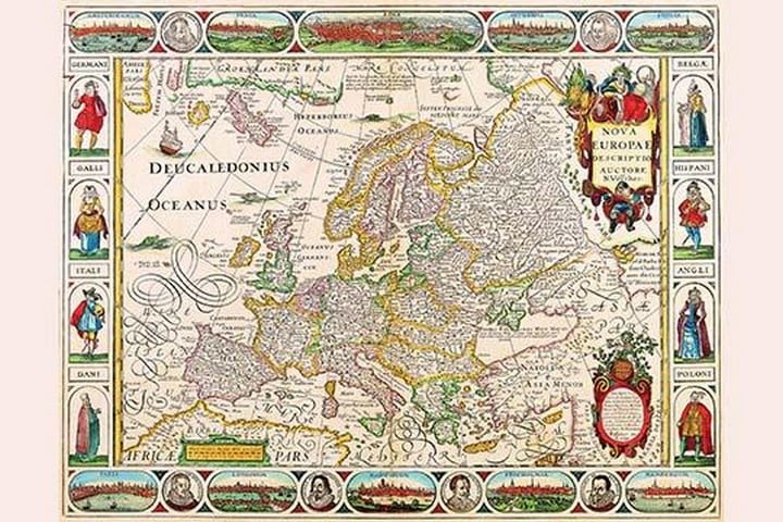 The Visscher family was the dominant force in map-making at the height of the Golden Age of Dutch cartography. They were known throughout Europe for their advanced geographic knowledge and for the artistic ornamentation of their works. They were one of the leading publishers in Amsterdam for nearly a century.1658/Amsterdam, Holland