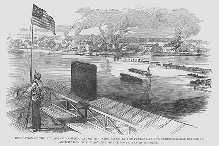 Frank Leslie was a prominent 19th-century American illustrator, publisher, and editor. He started as an illustrator for popular periodicals and established his own publishing company, “Frank Leslie’s Illustrated Newspaper,” which became one of the most successful and influential newspapers of its time. Leslie was also a pioneer in the use of photographs in journalism and established a photographic studio to create original images for his newspaper. He wrote several books and plays and was an important figure in the development of American media, shaping the way news was reported and disseminated. He died in 1880, leaving a lasting legacy.Evacuation of Hampton, Virginia by Butler anticipating arrival of Federal forcesUnknown Date/USA