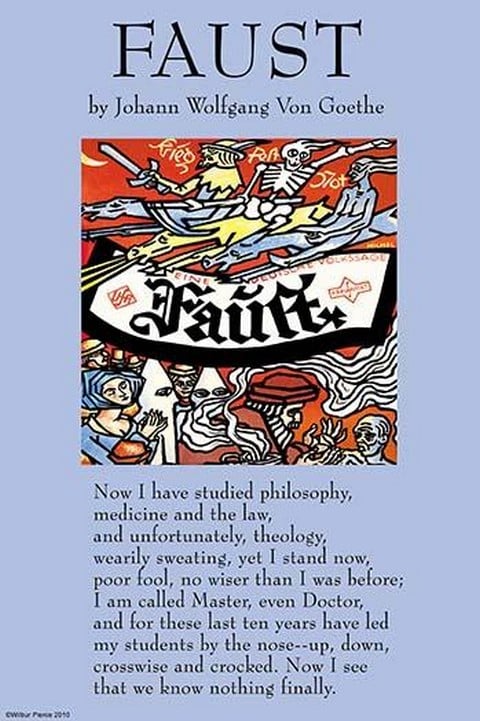 Faust or Faustus (Latin for ‘auspicious’ or ‘lucky’) is the protagonist of a classic German legend. Though a highly successful scholar, he is unsatisfied, and makes a deal with the Devil, exchanging his soul for unlimited knowledge and worldly pleasures. Faust’s tale is the basis for many literary, artistic, cinematic, and musical works. The meaning of the word and name has been reinterpreted through the ages. Faust, and the adjective Faustian, are often used to describe an arrangement in which an ambitious person surrenders moral integrity in order to achieve power and success: the proverbial ‘deal with the devil.’ The terms can also refer to an unquenchable thirst for knowledge.1587/Germany