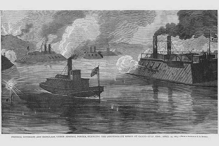 Frank Leslie was a prominent 19th-century American illustrator, publisher, and editor. He started as an illustrator for popular periodicals and established his own publishing company, “Frank Leslie’s Illustrated Newspaper,” which became one of the most successful and influential newspapers of its time. Leslie was also a pioneer in the use of photographs in journalism and established a photographic studio to create original images for his newspaper. He wrote several books and plays and was an important figure in the development of American media, shaping the way news was reported and disseminated. He died in 1880, leaving a lasting legacy.Federal Gunboats & Ironclads under Admiral Porter bombard Confederates at Grand Gulf MississippiApril 29, 1863/USA