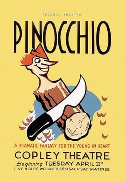 Federal Theatre Presents Pinocchio at the Copley Theatre by WPA – Posters and prints on paper or canvas by standard digital or deluxe giclee printing.