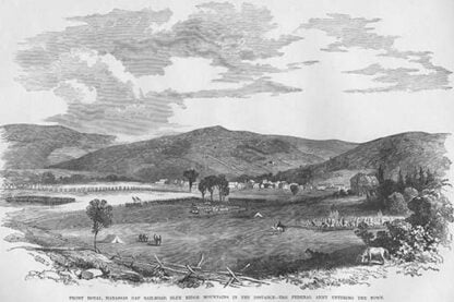 Frank Leslie was a prominent 19th-century American illustrator, publisher, and editor. He started as an illustrator for popular periodicals and established his own publishing company, “Frank Leslie’s Illustrated Newspaper,” which became one of the most successful and influential newspapers of its time. Leslie was also a pioneer in the use of photographs in journalism and established a photographic studio to create original images for his newspaper. He wrote several books and plays and was an important figure in the development of American media, shaping the way news was reported and disseminated. He died in 1880, leaving a lasting legacy.Federal Troops enter Front Royal at Manassas Gap1861/USA
