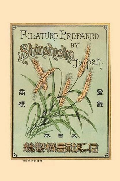 Wheat Spikes & leaves adorns this Japanese silk label.1891/Japan