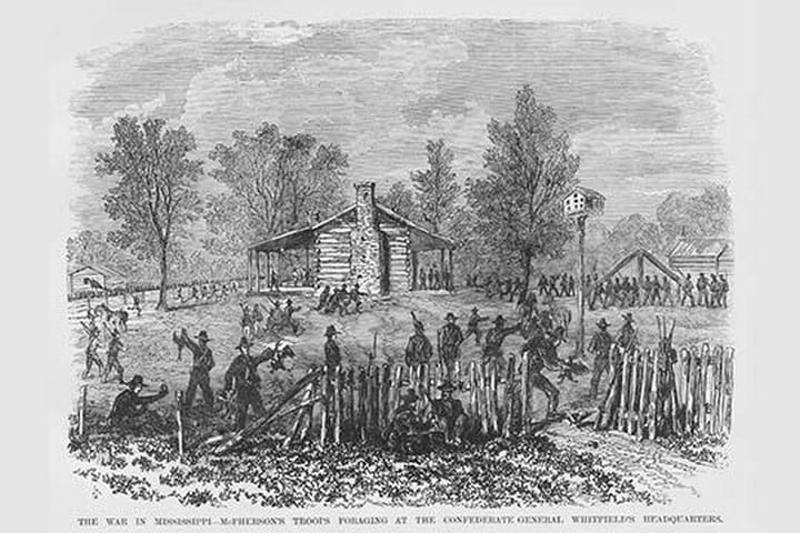 Frank Leslie was a prominent 19th-century American illustrator, publisher, and editor. He started as an illustrator for popular periodicals and established his own publishing company, “Frank Leslie’s Illustrated Newspaper,” which became one of the most successful and influential newspapers of its time. Leslie was also a pioneer in the use of photographs in journalism and established a photographic studio to create original images for his newspaper. He wrote several books and plays and was an important figure in the development of American media, shaping the way news was reported and disseminated. He died in 1880, leaving a lasting legacy.Foraging by McPherson’s troops at General Whitfield’s Confederate HeadquartersUnknown Date/USA