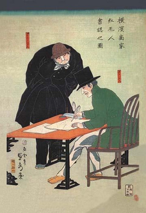 Ukiyo-e, ‘pictures of the floating world’, is a genre of Japanese woodblock prints (or woodcuts) and paintings produced between the Tokugawa or Edo Period (1615-1868). They were mass produced and meant for mainly townsmen, who were generally not wealthy enough to afford an original painting. The original subject of ukiyo-e was city life, in particular activities and scenes from the entertainment district; featuring motifs of landscapes, tales from history, the theatre and pleasure quarters.1861/Japan