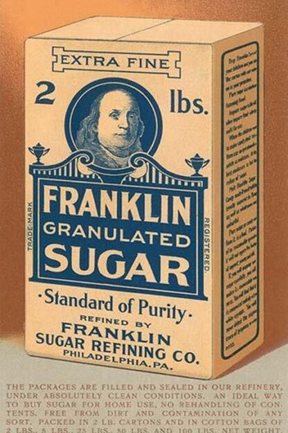 A Victorian trade card advertising ‘Franklin Granulated Sugar’ in the 2 pound box.Unknown Date/USA