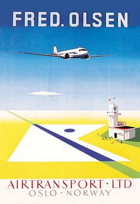 Travel & Leisure during the Heyday of Commercial Air Travel when Flying was exciting and foreign locations exotic. Fred. Olsens Flyselskap (FOF), trading internationally as Fred. Olsen Airtransport, was a Norwegian charter airline which operated between 1946 and 1997, largely operating cargo aircraft. Based based at Oslo Airport, Fornebu.1948/Norway