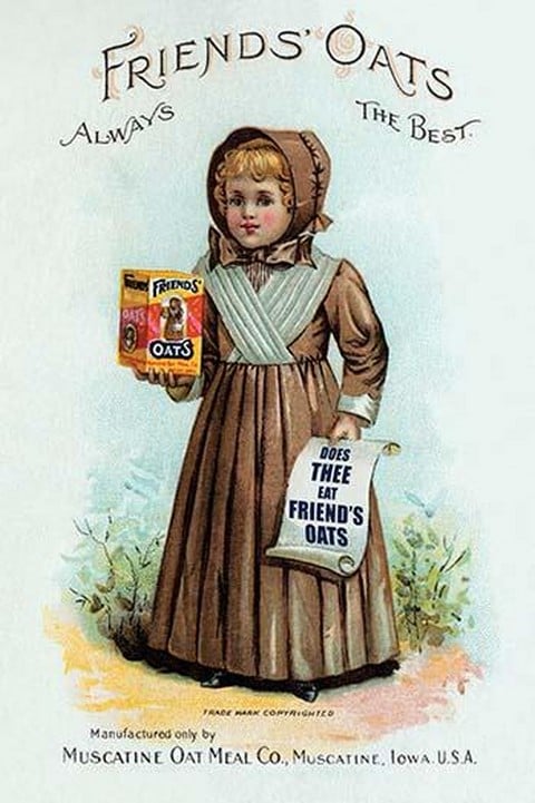 A Victorian trade card advertising ‘Friends’ Oats’ using a little Quaker girl as there trademark. Made in Muscatine Iowa.Unknown Date/USA