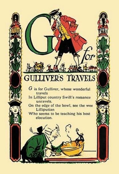 G for Gulliver’s Travels by Tony Sarg – Posters and prints on paper or canvas by standard digital or deluxe giclee printing.