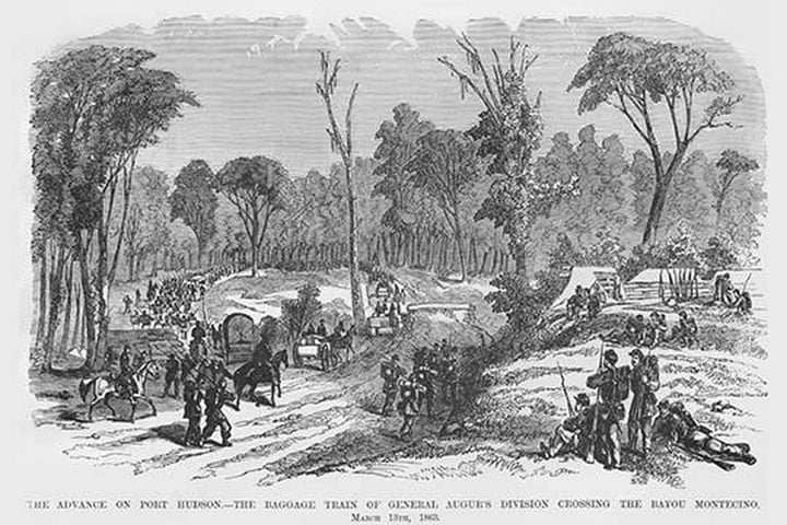 Frank Leslie was a prominent 19th-century American illustrator, publisher, and editor. He started as an illustrator for popular periodicals and established his own publishing company, “Frank Leslie’s Illustrated Newspaper,” which became one of the most successful and influential newspapers of its time. Leslie was also a pioneer in the use of photographs in journalism and established a photographic studio to create original images for his newspaper. He wrote several books and plays and was an important figure in the development of American media, shaping the way news was reported and disseminated. He died in 1880, leaving a lasting legacy.General Augur’s Baggage Train in the advance on Port HudsonMarch 13, 1863/USA