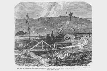 Frank Leslie was a prominent 19th-century American illustrator, publisher, and editor. He started as an illustrator for popular periodicals and established his own publishing company, “Frank Leslie’s Illustrated Newspaper,” which became one of the most successful and influential newspapers of its time. Leslie was also a pioneer in the use of photographs in journalism and established a photographic studio to create original images for his newspaper. He wrote several books and plays and was an important figure in the development of American media, shaping the way news was reported and disseminated. He died in 1880, leaving a lasting legacy.General McPherson Drives enemy form the Positions on the Canton RoadUnknown Date/USA