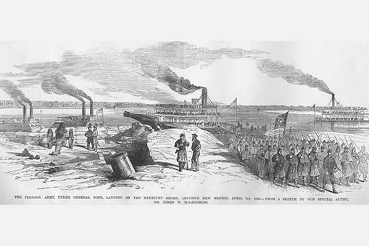 Frank Leslie was a prominent 19th-century American illustrator, publisher, and editor. He started as an illustrator for popular periodicals and established his own publishing company, “Frank Leslie’s Illustrated Newspaper,” which became one of the most successful and influential newspapers of its time. Leslie was also a pioneer in the use of photographs in journalism and established a photographic studio to create original images for his newspaper. He wrote several books and plays and was an important figure in the development of American media, shaping the way news was reported and disseminated. He died in 1880, leaving a lasting legacy.General Pope Landing on Kentucky shore opposite New MadridUnknown Date/USA