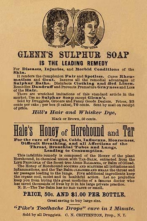 A Victorian medical trade card for a ‘quack’ medical cure for all dermatological conditions. The card also offers Tar for consumption.1890/USA