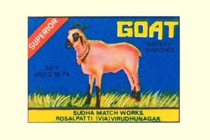 Thousands of companies manufactured matches worldwide and used a variety of fancy labels to make their brand stand out. The match boxes had unusual topics but some were much prettier than others. Features a goat.Unknown Date/India