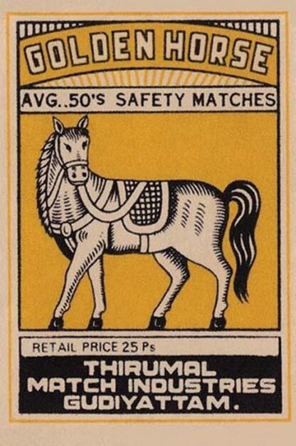A brand of matches made in India for export featuring a horse on the box top art.Unknown Date/India