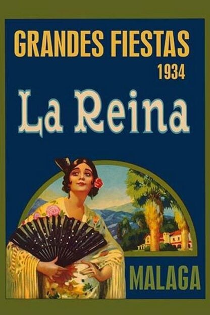 A modern poster displaying a 1934 festival in Malaga, Spain in honor of the Queen.2009/USA