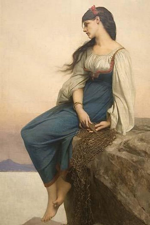 “Graziella” by Jules-Joseph Lefebvre is a poignant masterpiece that captures both beauty and tragedy. The painting portrays the eponymous heroine from Alphonse de Lamartine’s novel. Graziella, a beautiful granddaughter of a Neapolitan fisherman, falls in love with a young French man. Their passionate affair unfolds against the backdrop of the sea and the distant smoldering profile of Mount Vesuvius. Lefebvre skillfully depicts Graziella mending a fishing net, her gaze fixed on the horizon. Red flower petals, fallen from her hair, symbolize the waning of their love and her impending collapse. The composition exudes melancholy-a love thwarted by circumstances. Through delicate brushwork and evocative colors, Lefebvre captures the fragility of human emotions and the inexorable passage of time.