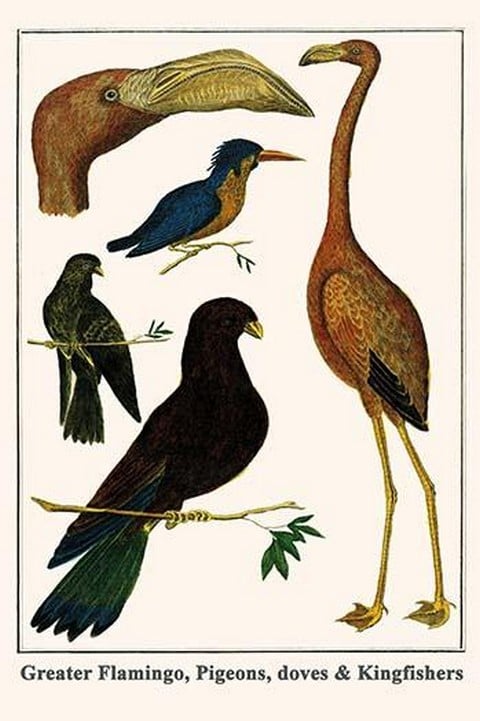 Greater Flamingo, Pigeons, Doves & Kingfishers by Albertus Seba – Posters and prints on paper or canvas by standard digital or deluxe giclee printing.