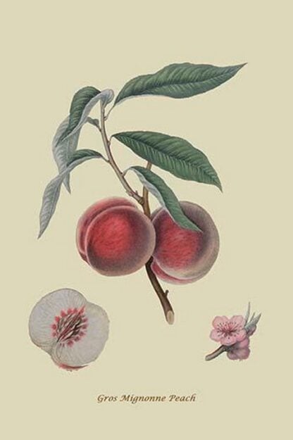 Gros Mignonne Peach by William Hooker #2 – Posters and prints on paper or canvas by standard digital or deluxe giclee printing.
