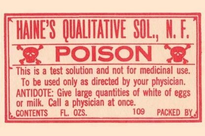 Haine’s Qualitative Solution, N.F. – Poison – Posters and prints on paper or canvas by standard digital or deluxe giclee printing.