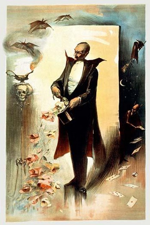 Magician pulling roses out of top hat surrounded by supernatural beings1892/USA