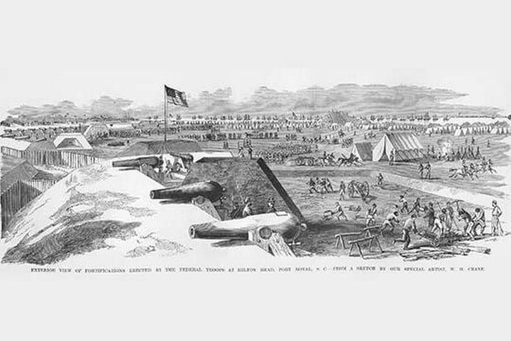 Frank Leslie was a prominent 19th-century American illustrator, publisher, and editor. He started as an illustrator for popular periodicals and established his own publishing company, “Frank Leslie’s Illustrated Newspaper,” which became one of the most successful and influential newspapers of its time. Leslie was also a pioneer in the use of photographs in journalism and established a photographic studio to create original images for his newspaper. He wrote several books and plays and was an important figure in the development of American media, shaping the way news was reported and disseminated. He died in 1880, leaving a lasting legacy.Hilton Head, Port Royal FortificationsUnknown Date/USA