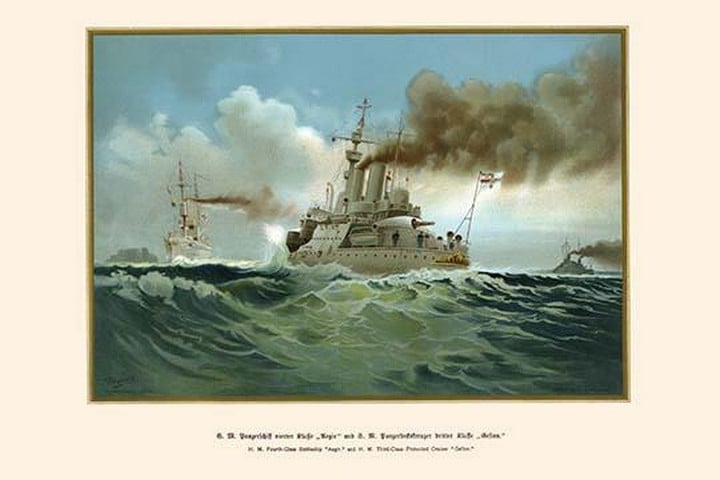 H.M 4th Class Battleship ‘Aegir’ & H.M. 3rd Class Protected Cruiser Gesion’ by G. Arnold – Posters and prints on paper or canvas by standard digital or deluxe giclee printing.