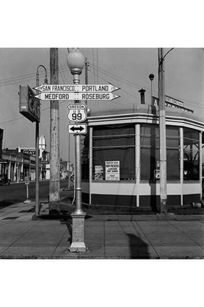 Sign of service station, U.S. 99. Hop pickers are wanted for four big growers of the area three weeks before opening season. They also advertise in newspapers including San Francisco newspapers, 450 miles away. Josephine County, Oregon1939/USA