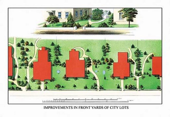 Improvements in Front Yards of City Lots by J. Weidermann – Posters and prints on paper or canvas by standard digital or deluxe giclee printing.