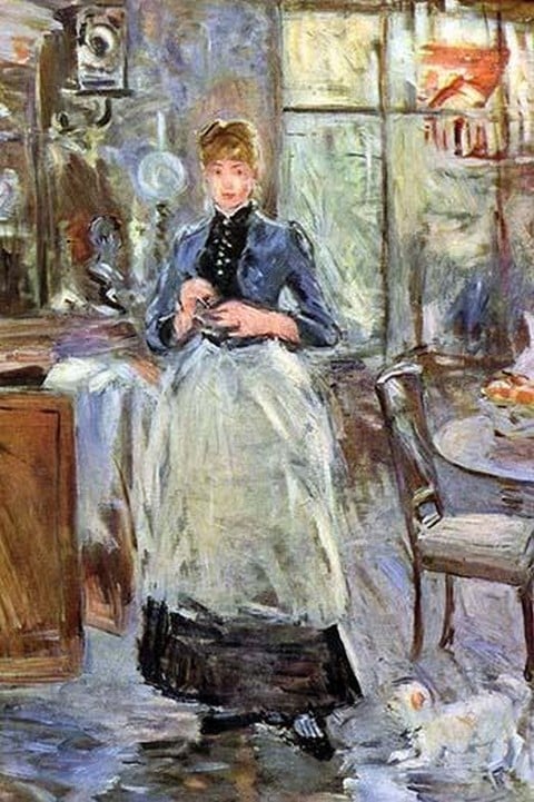 Woman wearing apron is apparently working between the kitchen and dining room1875/France