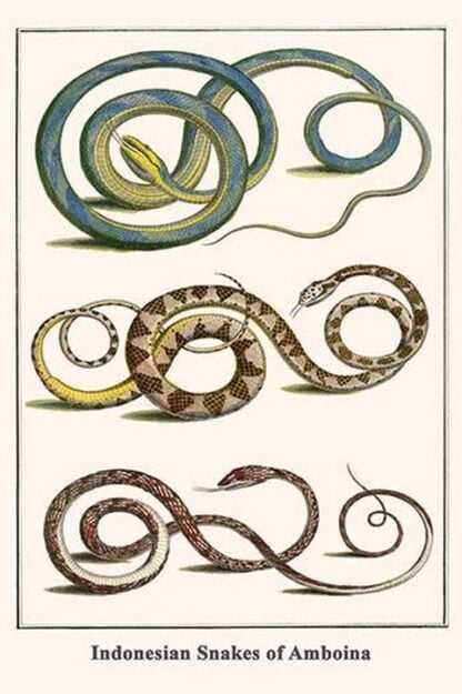 Indonesian Snakes of Amboina by Albertus Seba – Posters and prints on paper or canvas by standard digital or deluxe giclee printing.