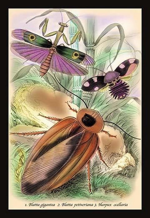 Insects: Blatta Gigantea, B. Petiveriana and Harpax Ocellaria by James Duncan – Posters and prints on paper or canvas by standard digital or deluxe giclee printing.