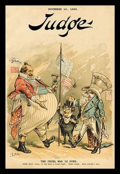 Political commentary was a staple of every era. Two publications were at the forefront of reporting and even lampooning the Government and it’s people. These were Puck and Judge. Through cartoons are articles they brought complicated subjects to everyday people.1888/USA
