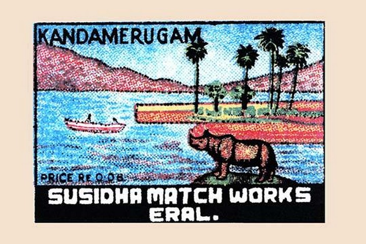 Thousands of companies manufactured matches worldwide and used a variety of fancy labels to make their brand stand out. The match boxes had unusual topics but some were much prettier than others. Features a rhinocerous on the shores of a lakeUnknown Date/India