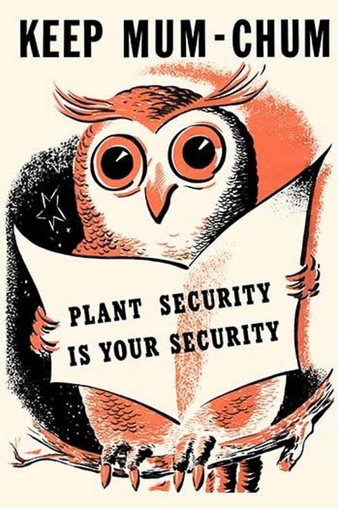 WWII domestic security was extremely to prevent Nazi spies from learning wartime secrets. This poster touts ‘plant security is your security.’ This second world war poster allows the people on the home front feel that they are contributing to the war effort.Unknown Date/USA