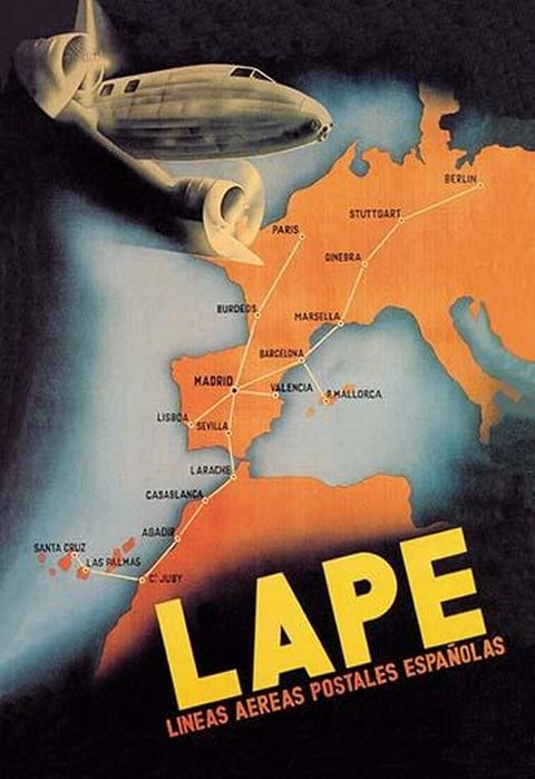 Travel and leisure during the heyday of commercial air travel when flying was exciting and foreign locations exotic. LAPE, Spanish Postal Airlines (Lineas Aereas Postales Espanolas), was the Spanish national airline during the Second Spanish Republic.1932/Spain