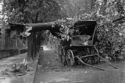 Large Tree Falls and Crushes Horse Drawn Wagon on Road1922/USA
