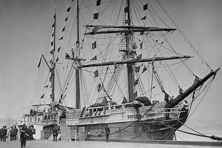 The Prison ship ‘Success’ was constructed in built in Natmoo, Tenasserim, Burma in 1840. sold to London owners and made three voyages with emigrants to Australia during the 1840s. On 31 May 1852 the Success arrived at Melbourne with emigrants, and the crew deserted to the gold-fields, this being the height of the Victorian gold rush. Due to an increase in crime, prisons were overflowing and the Government of Victoria purchased large sailing ships to be employed as prison hulks. These included the Success. the ship ultimately became a museum and traveled the world displaying its methods of control and confinement.1912/USA