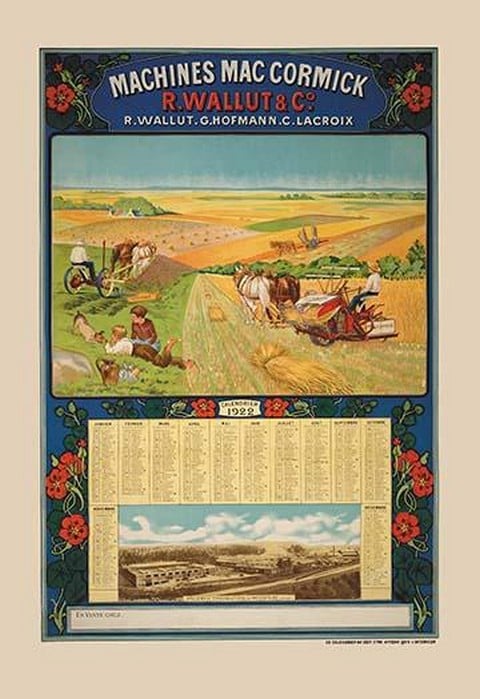 Machines MacCormick – Calendar, 1922 – Posters and prints on paper or canvas by standard digital or deluxe giclee printing.