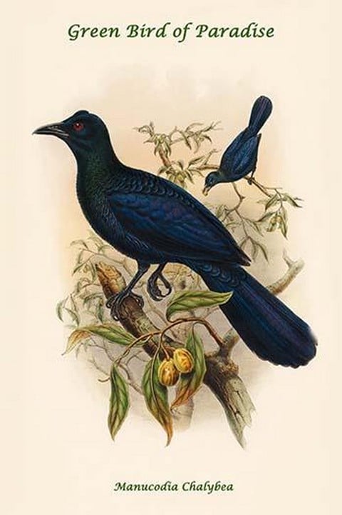 Manucodia Chalybea – Green Bird of Paradise by John Gould