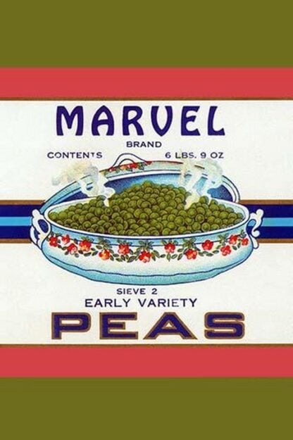 Original can label for Marvel Brand Early Variety Peas.Unknown Date/USA