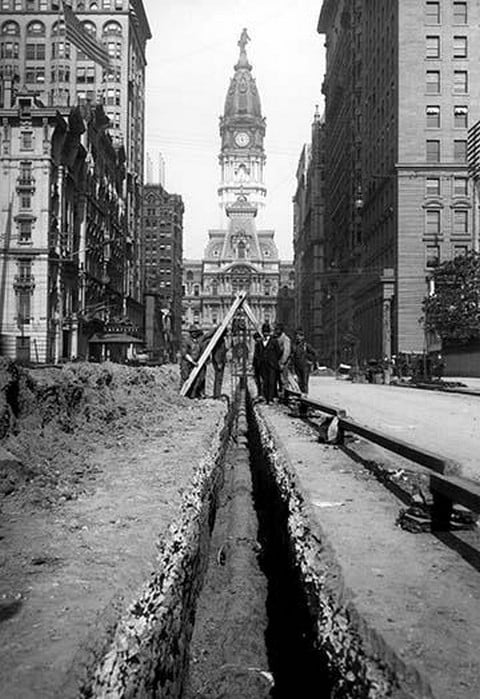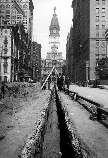 Men Posing While Laying Pipe, Philadelphia, PA
