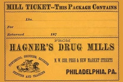 Mill Ticket from Hagner’s Drug Mills – Posters and prints on paper or canvas by standard digital or deluxe giclee printing.