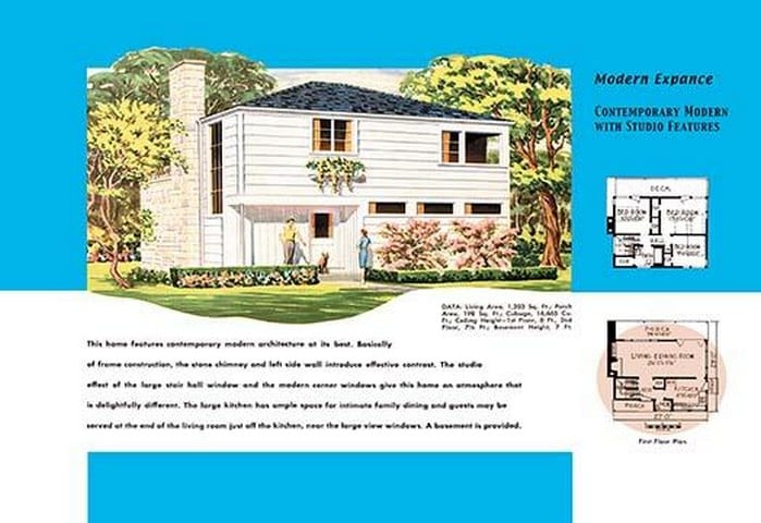 Architectural Drawings of Domestic Residences and Home in 1950 America with floor plan and descriptions of home modelsUnknown Date/USA