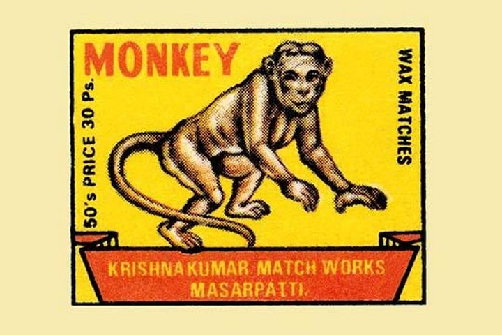 Thousands of companies manufactured matches worldwide and used a variety of fancy labels to make their brand stand out. The match boxes had unusual topics but some were much prettier than others. Features a monkeyUnknown Date/India
