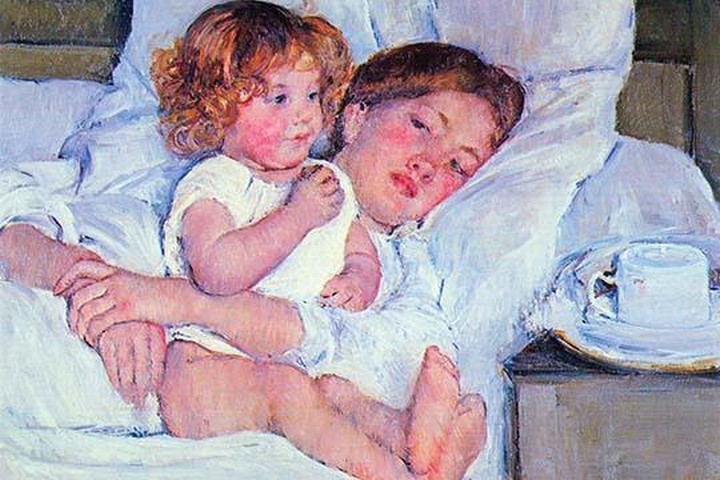 Mother in Mothers bed, Mother rests on Pillow1870/USA