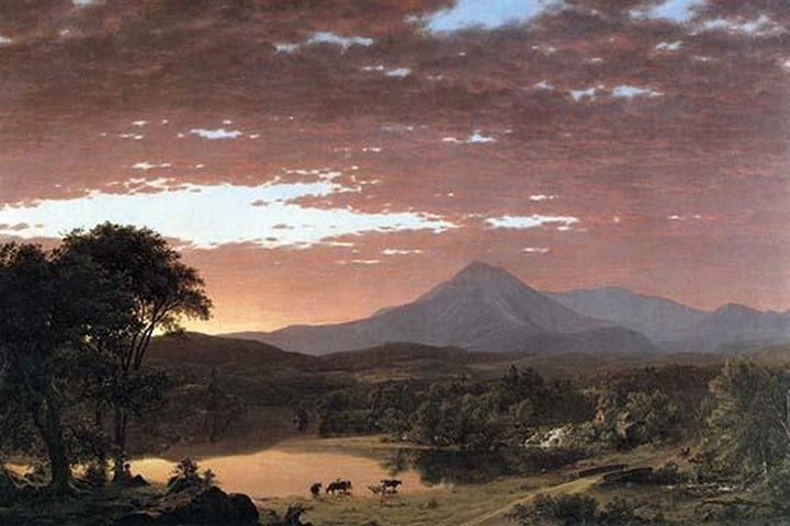 Mount Katahdin (USGS name) is the highest mountain in Maine. Named Katahdin by the Penobscot Indians, the term means ‘The Greatest Mountain’. Katahdin is the centerpiece of Baxter State Park: a steep, tall mountain formed from underground magma. The flora and fauna on the mountain are typical of those found in eastern Canada. Katahdin was known to the Native Americans in the region, and was known to Europeans at least since 1689. It has inspired hikes, climbs, paintings, and a piano sonata[1]. The area around the peak was protected by Governor Percival Baxter starting in the 1930s. Katahdin is the northern terminus of the Appalachian Trail, and is located in a stretch known as the Hundred-Mile Wilderness.1860/USA