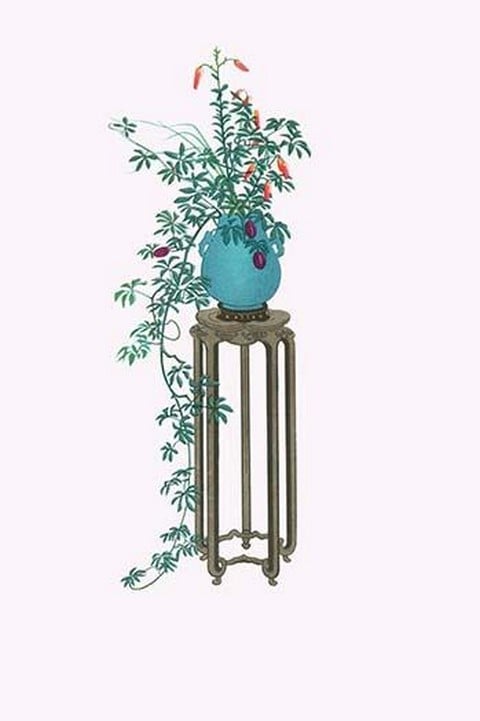 Mube, Oniyuri, and Susuki (Stauntonia, Tiger Lily, and Flowering Grass) in a Tsubo is a captivating Japanese flower arrangement captured in an exquisite painting by Josiah Conder. Created during the late 19th century, this artwork beautifully combines botanical precision with artistic sensibility. The composition features three distinct elements: Mube (Stauntonia), Oniyuri (Tiger Lily), and Susuki (Flowering Grass), all arranged harmoniously within a traditional tsubo (a ceramic pot or vase). Conder’s attention to detail allows us to appreciate the delicate petals, graceful stems, and the subtle interplay of colors. Each plant symbolizes different aspects of nature-resilience, elegance, and transience. As we gaze upon this serene arrangement, we glimpse the timeless beauty of Japanese aesthetics, where simplicity and balance hold profound meaning. Conder’s work invites us to pause, contemplate, and find solace in the delicate dance of flora within the confines of the tsubo.