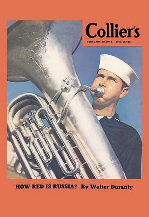 Navy Tuba Player by Colliers – Posters and prints on paper or canvas by standard digital or deluxe giclee printing.